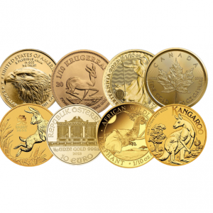 Gold: 1oz, 1/2oz, 1/4oz, 1/10oz, 1/20oz