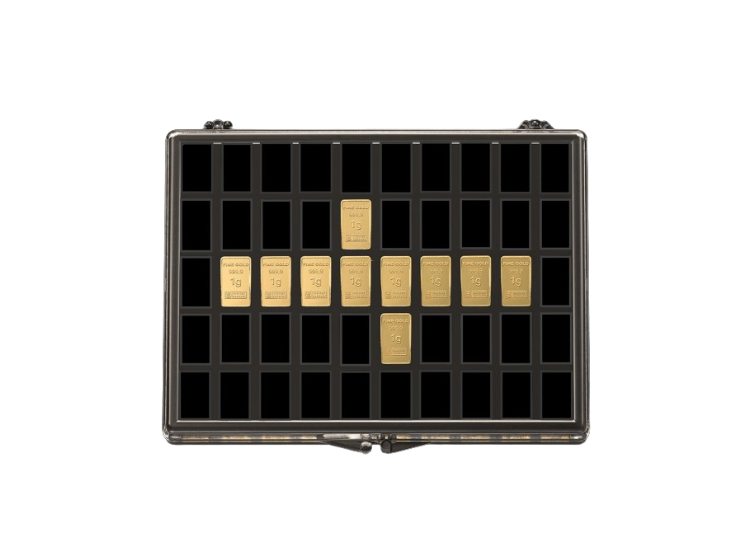 Die UnityBars bieten Wertbeständigkeit, mit einem hohen Maß an Flexibilität. Anders als herkömmliche Tafelbarren müssen hier keine 1g Barren herausgeknickt werden, sondern sind durch die exakt geformten Einzelbarren einfach zu handhaben und praktisch sofort entnehmbar. Außerdem können die Boxen durch einzelne 1g Barren (bis 24/50 Stck.) erweitert werden.