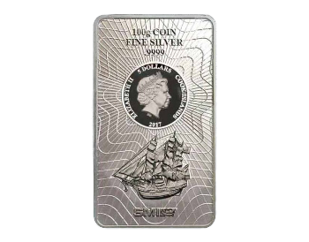 Auf der Motivseite der Cook Islands Silbermünzen ist das berühmte Segelschiff „Bounty“ abgebildet. Darunter stehen sowohl der Nennwert als auch das Gewicht und der Feingehalt. Aufgrund der Differenzbesteuerung gegenüber den 19% Mehrwertsteuer bei normalen Silberbarren sind Münzbarren für Privatpersonen eine günstige Alternative Silber zu erwerben.