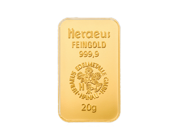 Heraeus Goldbarren werden in verschiedenen handelsüblichen Größen von 1 Gramm bis