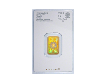 Im Vergleich zu den herkömmlichen Barren, enthält der Kinebarren auf der Rückseite ein Kinegramm, das ein zusätzliches und anerkanntes Echtheitsmerkmal darstellt.